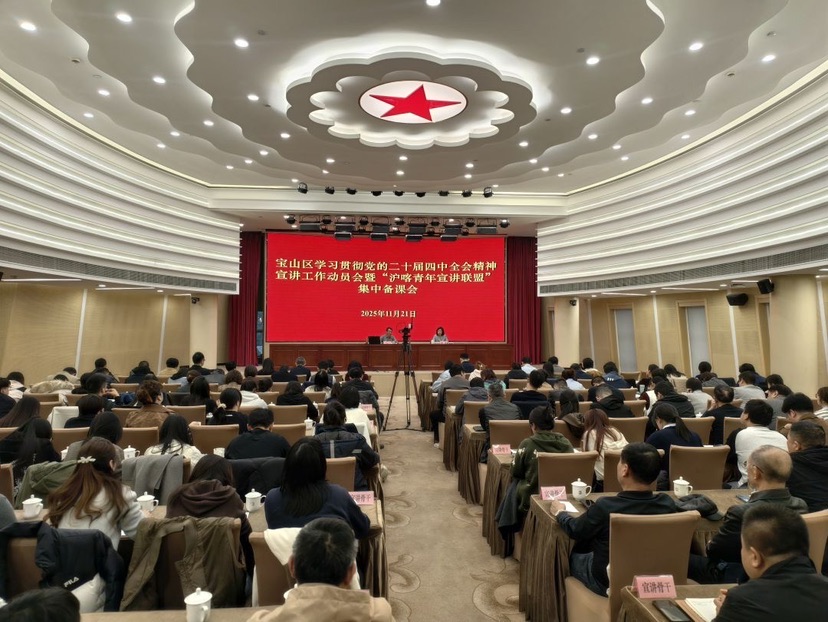 11月21日下午,上海宝山区机关大楼二楼第一会议室,一场跨越千里的集体备课正在进行。大屏幕上,新疆喀什地区十二个县市的宣讲骨干齐聚云端,与宝山主会场同步聆听上海市学习贯彻党的二十届四中全会精神宣讲团成员、上海交通大学马克思主义学院邢云文院长的专题辅导。这是“沪喀青年宣讲联盟”首次以视频联动形式开展集中备课,也是宝山区探索跨区域理论传播协作机制的一次重要实践。