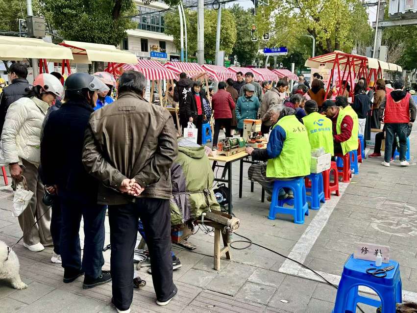 “老板,这按摩太专业了!”“这家店的促销活动太实在,以后常来!” 公益集市上,此起彼伏的夸赞声里,藏着主理人们的责任与智慧。在街区党支部的牵头策划下,主理人们主动整合自身资源与特长,化身“多元服务官”搭起特色摊位:按摩、修家电、量血压等便民服务精准对接居民需求,让大家足不出街区就能享实惠;新店推广、老店促销、巧手妇女的手作展示,既打响了店铺口碑,又给街区注入了新鲜活力。主理人们用“公益 + 营商”的双轮驱动模式,既当居民的“便民管家”,又做自家店铺的 “推广官”,让善意与生意双向奔赴,让街区活力满满。