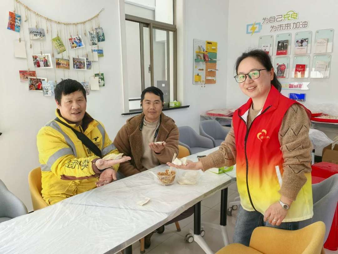 迎新时刻,街区的饺子香里藏着最浓的邻里情。主理人们主动牵头,和外卖小哥、快递小哥一起揉面团、调馅料,欢声笑语中,陌生感渐渐消散,“邻里一家亲”的氛围愈发浓厚。趣味问答环节里,大家聊习俗、话渊源,传统文化的魅力在互动中悄然传递。更暖心的是,主理人们和小哥一起把亲手包的饺子送到敬老院,让爱心从街区延伸到养老机构。作为活动的核心组织者与联结纽带,主理人们既让奔波在外的新就业群体感受到了街区的归属感与温暖,又延续了敬老爱老的传统美德,让不同群体在协作中凝聚成街区共建的“硬核力量”。