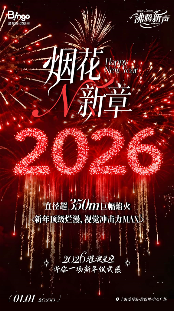 爱琴海・缤纷里商业街将延续狂欢氛围,1月1日,治愈系摇滚乐队“歌之初”以五重声线压轴登场,用交织的温暖声浪迎接新年。当晚8点,一场特别焰火盛典将璀璨绽放,其中特别设计的“2026”数字造型烟花将在夜空清晰呈现,定格独一无二的新年记忆。整点还将开启多轮幸运抽奖,联动场内商户推出缤纷消费福利,实现吃喝玩乐购一站式尽兴体验。