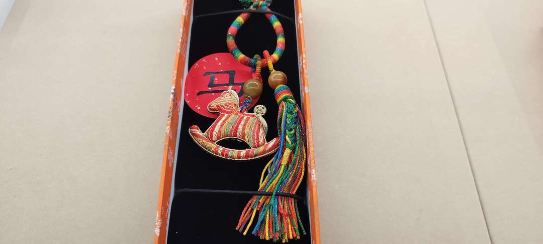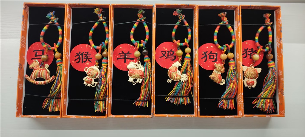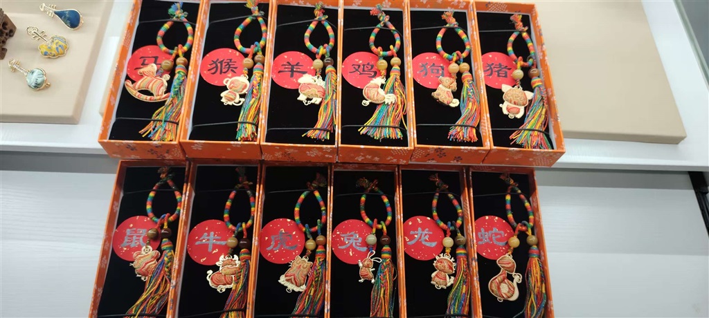 “元旦将至,想要做一些适合新年氛围的作品,也给社区里的手工课增添一些新意。”据陈小芳介绍,该套生肖款宋锦挂饰主体以红色、金色为主,流苏采用藏棉染色编织而成,生肖形象则用宋锦缝制装饰,配以菩提珠点缀,耗时约半个月制作完成。“后面我也会在社区里开设相关课程,让大家都来体验制作。”
