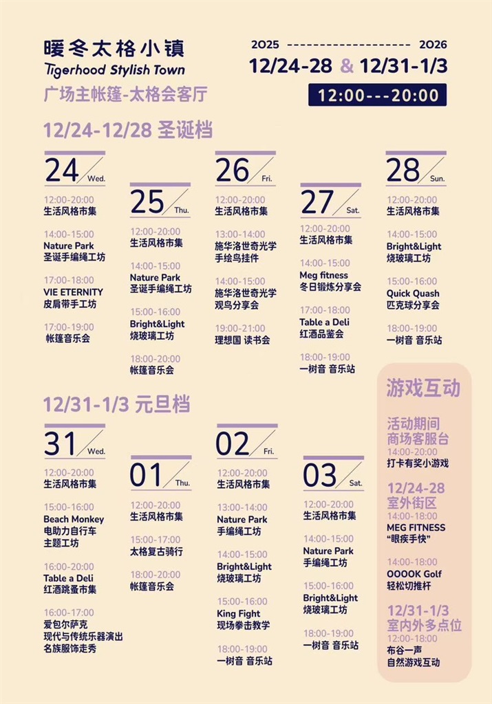 岁末之际,年味渐起。这几天,静安PAC购物中心的户外街区变了模样——巨型星形灯饰悬在半空,松枝缠绕暖光串灯,地面映着树影,整条街像被温柔点亮。夜幕降临时,灯光如星河倾泻,市民裹着围巾、端着热红酒漫游其间,仿佛走进了北欧童话里的冬日市集。这里是PAC携手生活方式平台太格有物打造的“暖冬太格小镇”,将自然里的户外节首次搬进都市,不仅有北欧节日的篝火、山野手作的温度,还集结一众生活方式与户外品牌,带来岁末迎新聚会新玩法。连续9天(2025年12月24日—28日、2025年12月31日—2026年1月3日),每天12点到20点,免费入场,欢聚不重样,让岁末迎新的每一天都充满新鲜感与仪式感。