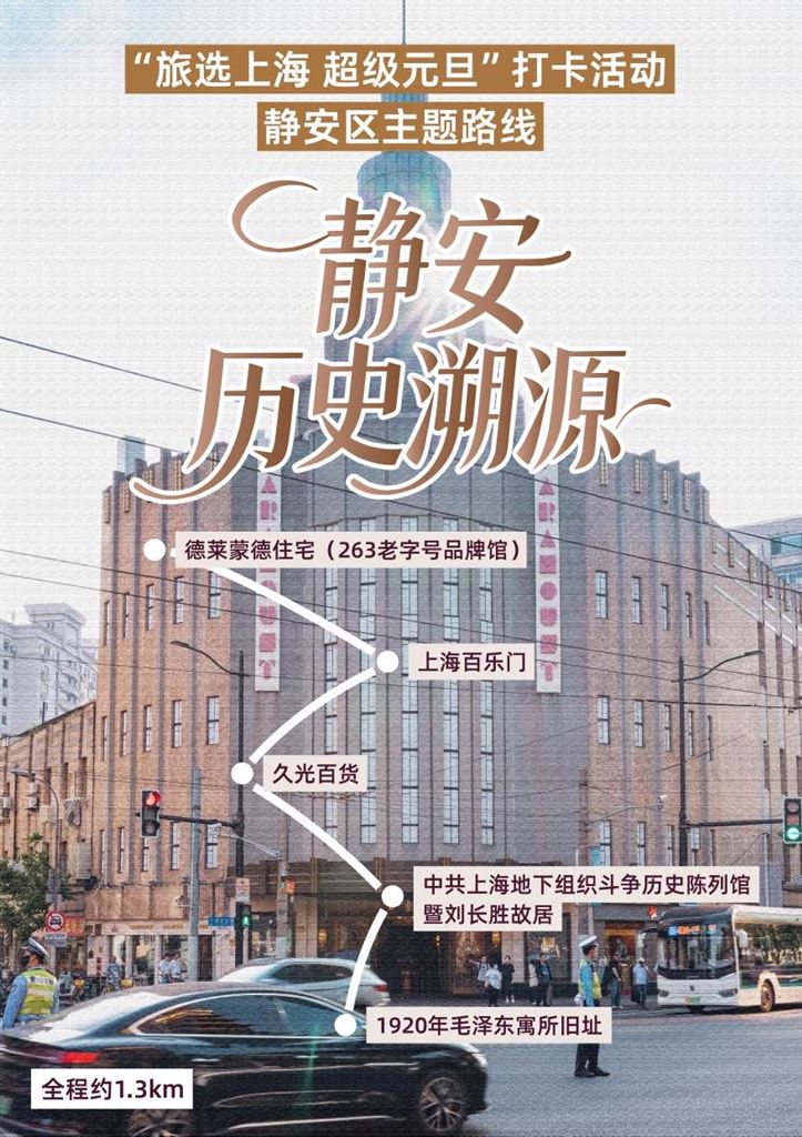 点位串联:德莱蒙德住宅(263老字号品牌馆) → 上海百乐门 → 久光百货 → 中共上海地下组织斗争史陈列馆暨刘长胜故居 → 1920年毛泽东寓所旧址