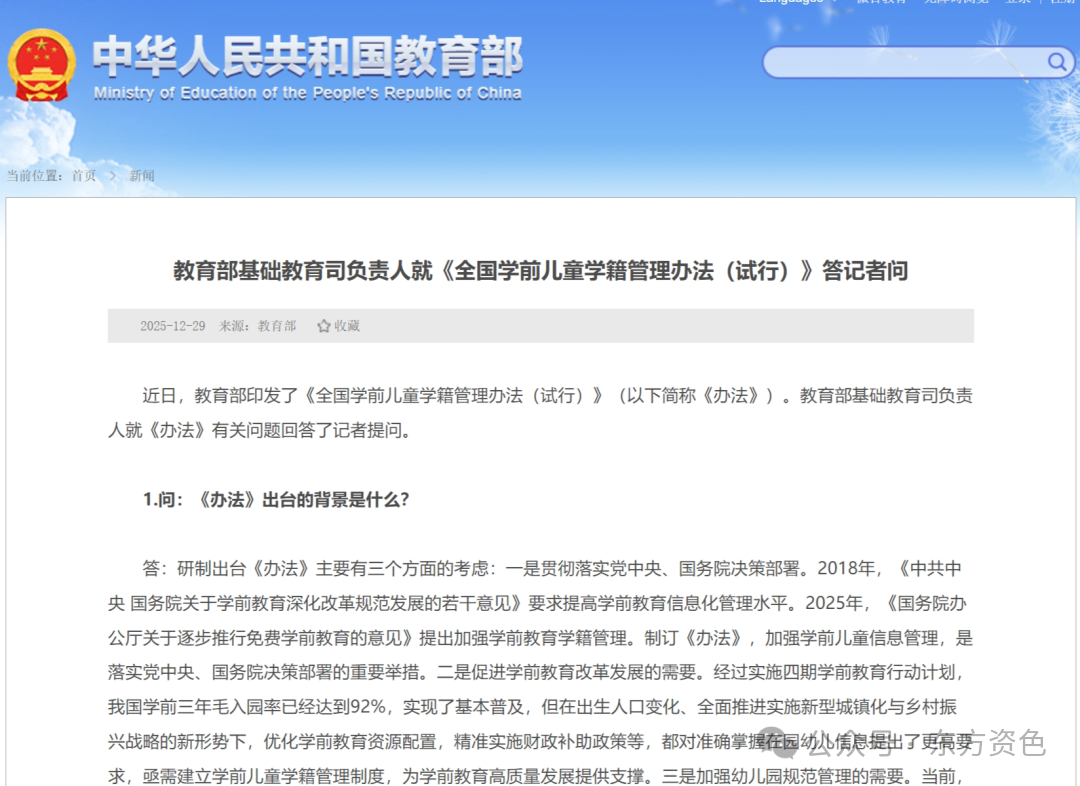 学龄前儿童要有学籍了!教育部:“一人一籍、籍随人走”,终身不变!