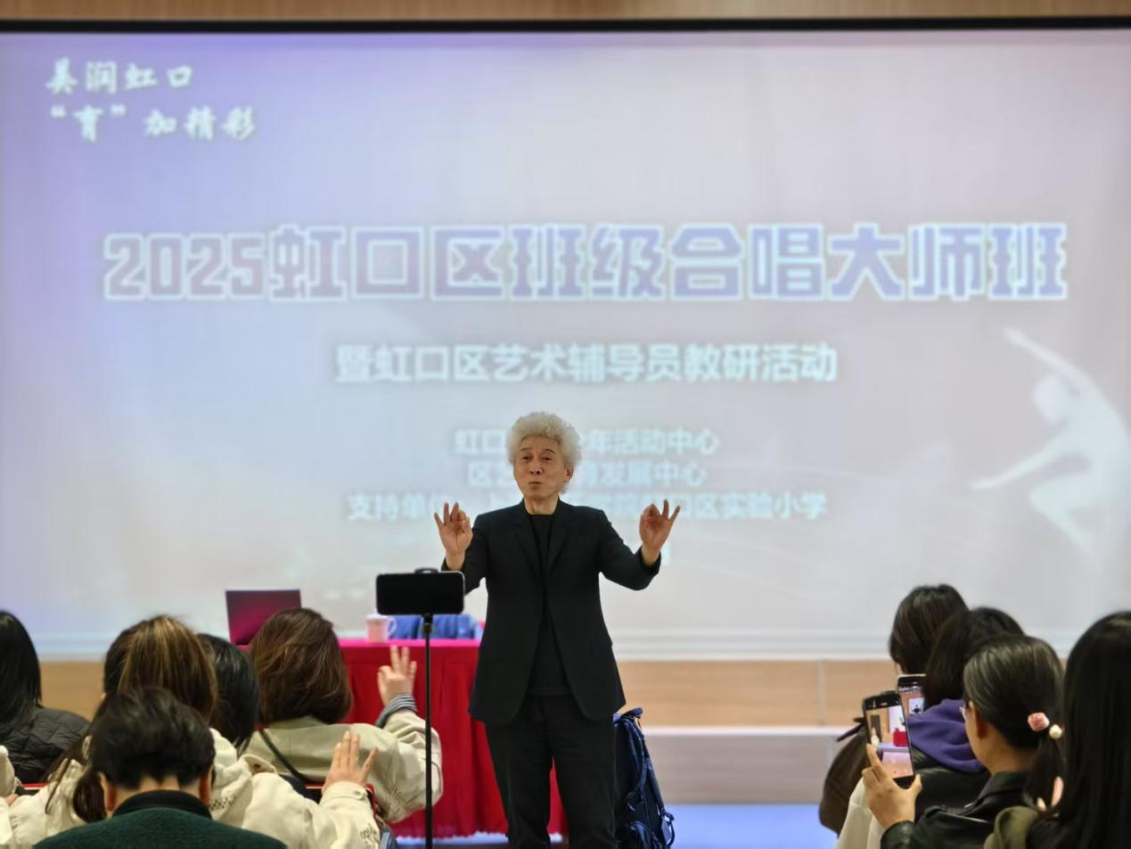 组织“人人会”教师专题培训,邀请合唱指挥专家开展班级合唱大师班,推动理论实践融合。建立“虹口班级合唱曲库”,共享《堆雪人》《小青蛙》等童趣与艺术性兼备的曲目,助力新人新作发展。