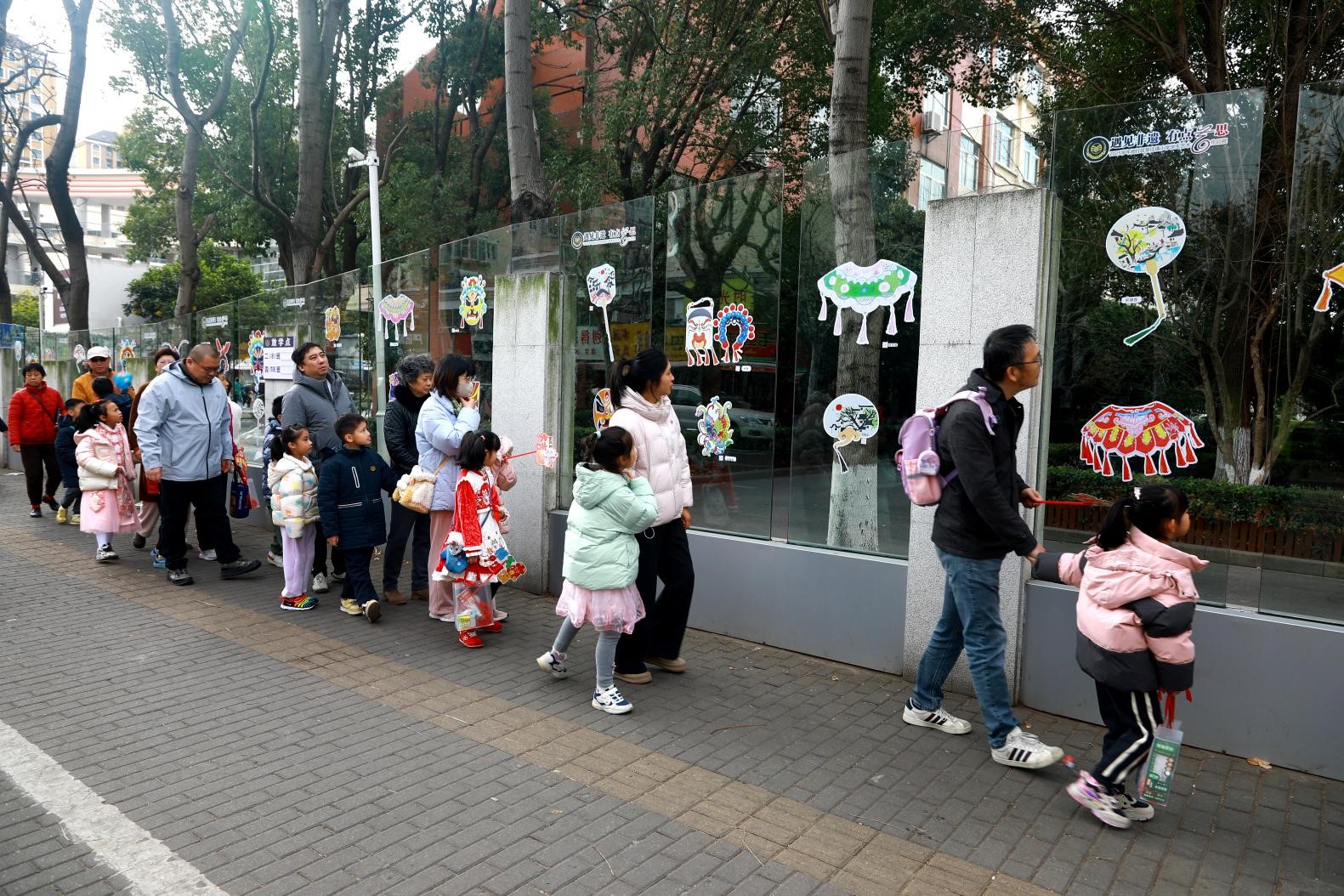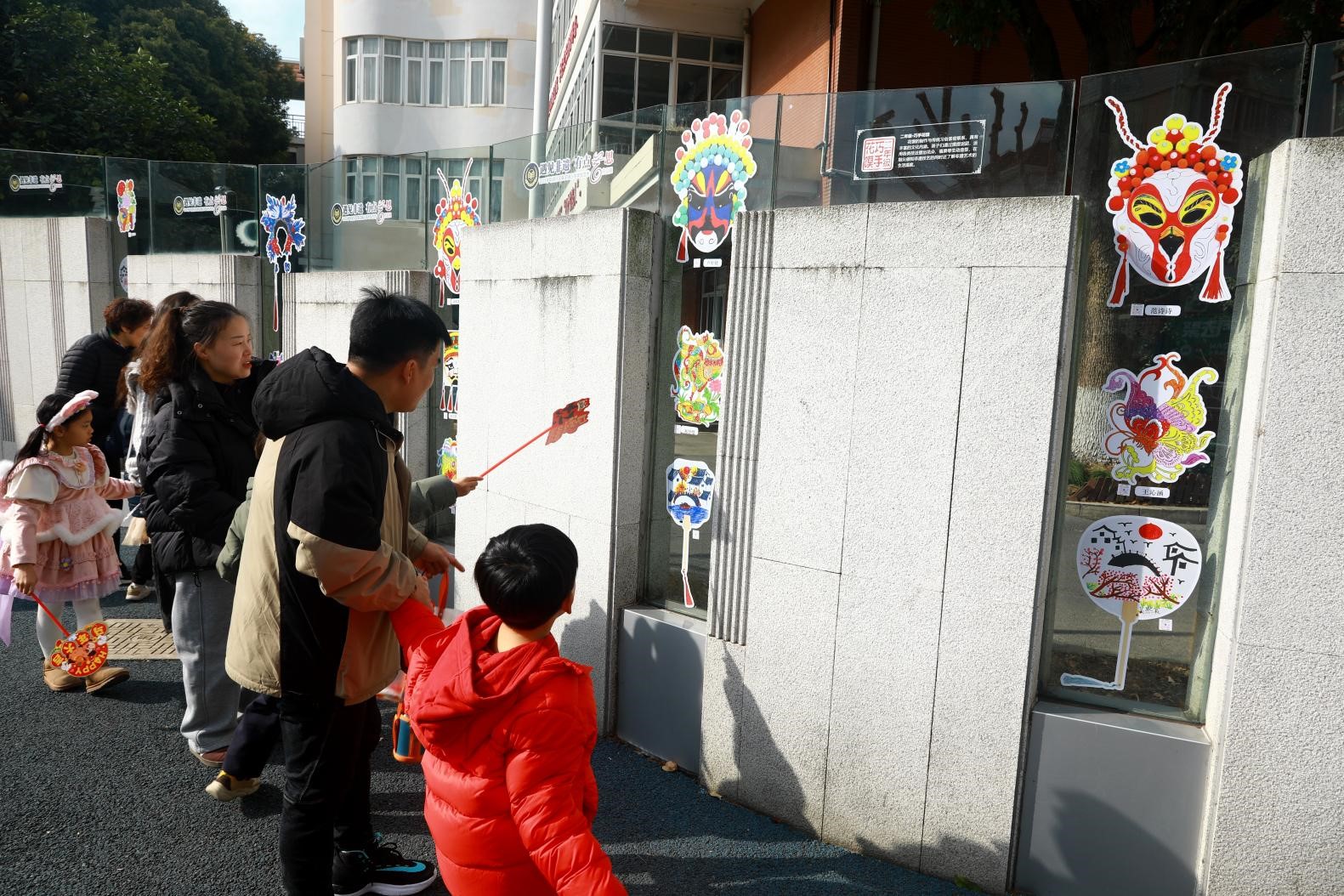 基于扎实的课堂教学,学校为学生搭建了多元的展示与传播平台。活动中培养的“非遗小讲解员”在展览现场自信地讲解,这一过程既深化了其文化理解,也锻炼了综合素养。尤为创新的是,学校将南校区沿街墙面打造为“露天美术馆”,所有学生作品附有创作二维码,直接面向社区居民展示。看着孩子在自己的作品前兴奋地介绍,不少家长频频拿出手机留下这富有意义的时刻。“宝贝的作品‘上墙’了,感谢学校提供这样的机会,没想到这么小的孩子也能这么富有创造力。”一位家长颇为激动地表示。
