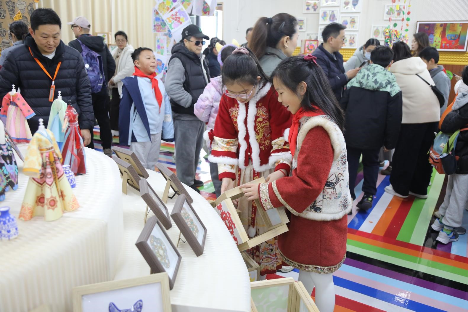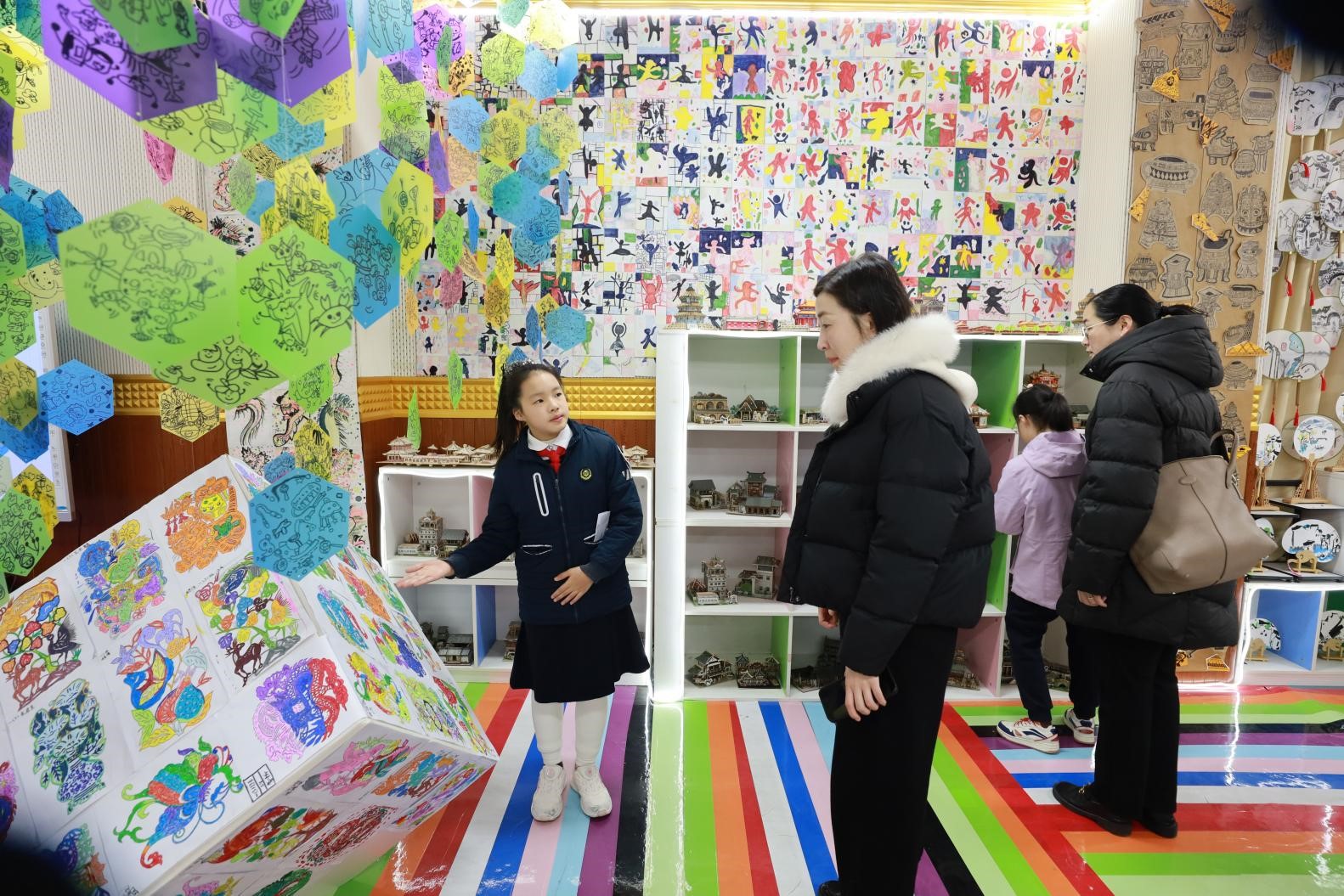 “往年会对参展作品进行筛选,但这次我们力求让全校每一个孩子的作品都有机会亮相。学校不仅充分利用校内空间,更将精选作品延伸至校外,通过举办面向社区的开放展览、组织亲子观展、邀请公众参与作品评议等多元形式,主动将优质美育资源向周边辐射,积极构建‘学校主导、家庭参与、社区支持’的协同育人格局。“校长薛琼认为,这不仅让学生的创作从校园“走”入公共视野,更使他们从文化的“学习者”转变为积极的“传播者”与“小达人”,在真实的社区互动中践行文化传承的使命。