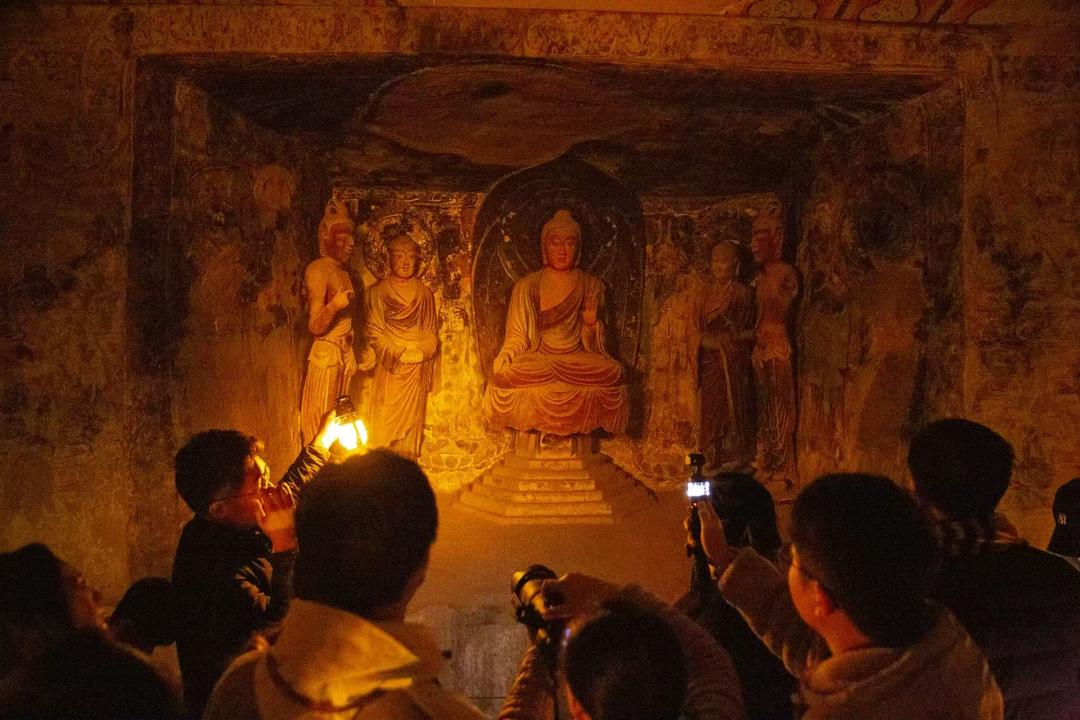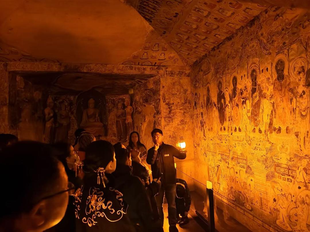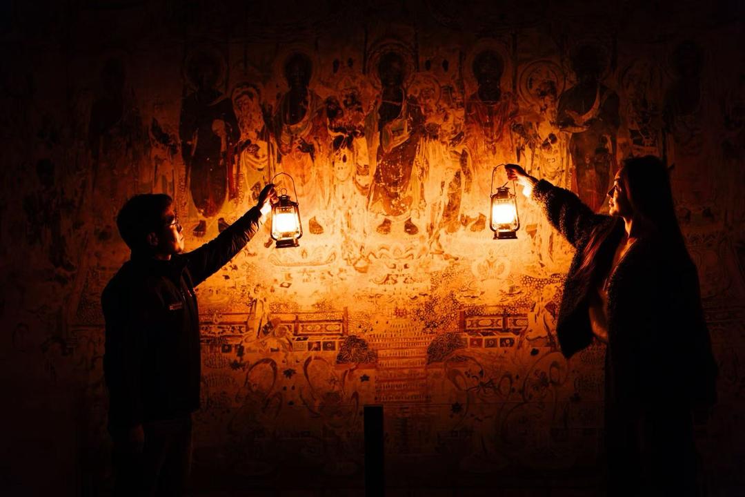 本次活动采用全暗场设计,参观者仅凭马灯、蜡烛与手电筒的微光指引,在黑暗中“用心感受”莫高窟的千年气息。“这既是还原莫高窟洞窟的真实环境,也是复刻早期考古工作者的考察场景。”活动组织者介绍,暗场设计旨在让参观者摆脱视觉干扰,专注感受敦煌艺术的神韵与传承力量。