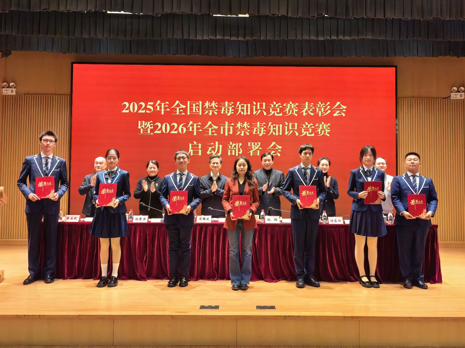 1月5日,2026年全市禁毒知识竞赛启动部署会在普陀区青少年活动中心召开。会上对在2025年全国青少年禁毒知识竞赛总决赛中获奖的上海代表队进行了表彰。