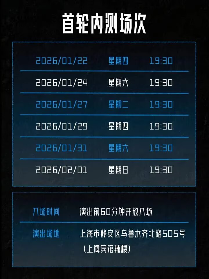 该音乐秀将于1月22日在静安区乌鲁木齐北路505号上海宾馆辅楼正式启幕,选址于静安历史文化与现代艺术交融的地标区域,正是呼应了作品本身“打破边界”的精神内核——让观众从屏幕之外,真正走入《双城之战》中秩序与混沌交织的奇幻世界。