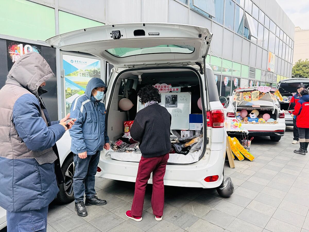 上海百联邻里商业管理有限公司、五分之一(上海)品牌管理有限公司等企业党组织,带着精心准备的商品“摆起小摊”,一个个装饰精美的后备箱变身“潮趣铺子”。居民们踊跃选购,所有爱心款后期由党群中心牵头爱心车主共同走访慰问社区困难家庭,让商业活力转化为公益暖流,让企业在服务中提升品牌好感度、挖掘潜在需求。这种“党建+公益+商业”的创新融合模式,既优化了区域营商环境,又让困难群体感受到党和社会的关怀,实现企业发展与居民福祉双向奔赴!