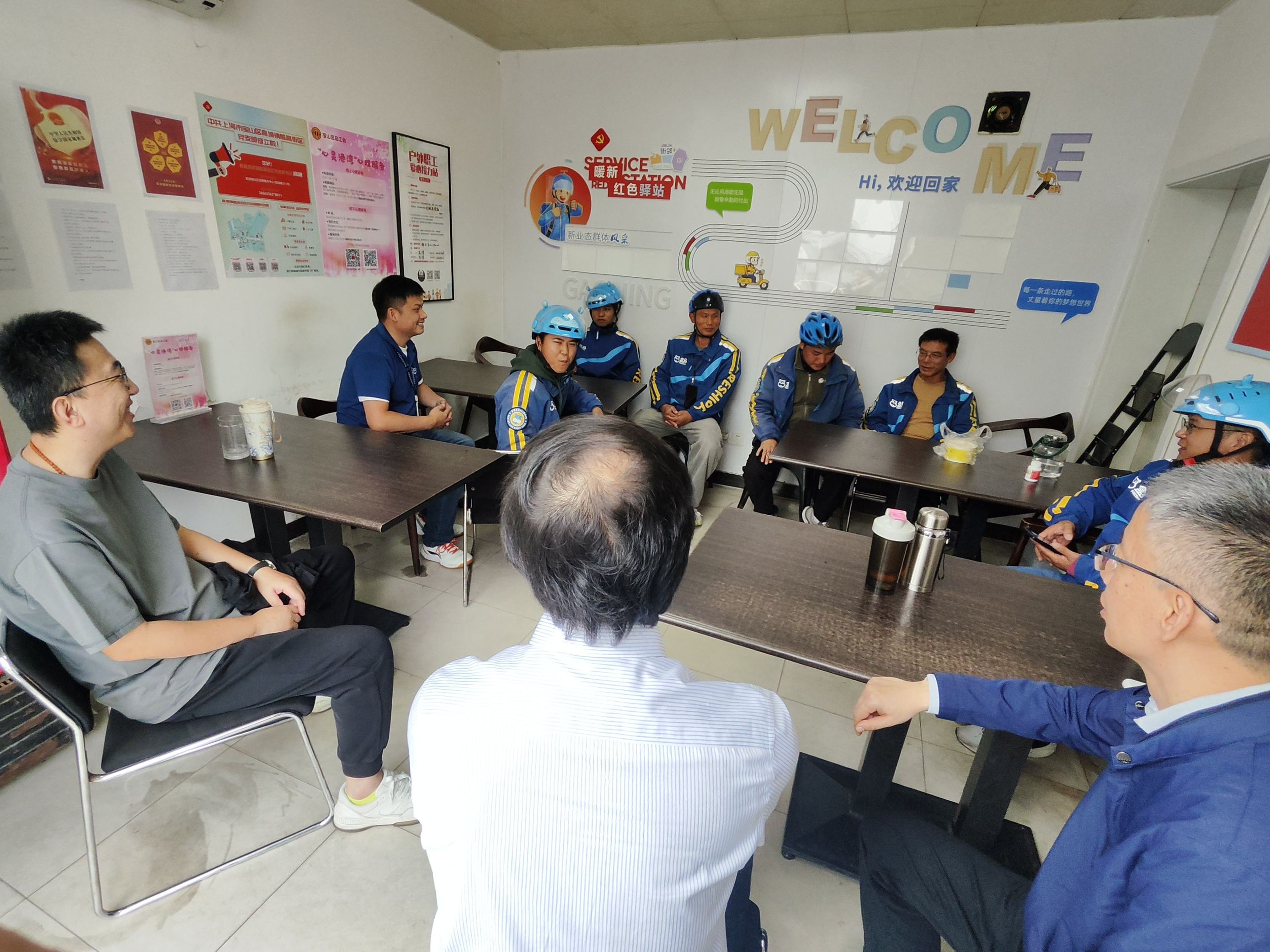 随着猪咪咪成为共同的情感纽带,街区党总支将协商主题拓展至暖新驿站自身的管理。在协商中,骑手提出“室内禁烟”建议,保洁人员优化清扫排班表,大家还商定“轮值站长”制度,驿站管理从外部供给转向自我管理,形成良性循环。同时,街区党总支依托“街邻”工作体系,链接更多优质资源,如开展“手工解压沙龙”,建设心理健康工作室,引入志愿服务队提供常态化服务,发起驿站墙面“猪咪咪”猫站长主题壁画共绘活动等。自8月份试点以来,园区共开展相关活动9场,提供惠民服务超500人次、心理服务近200人次。驿站从充电休憩的“歇脚地”升级为情感承载的“暖心家”。