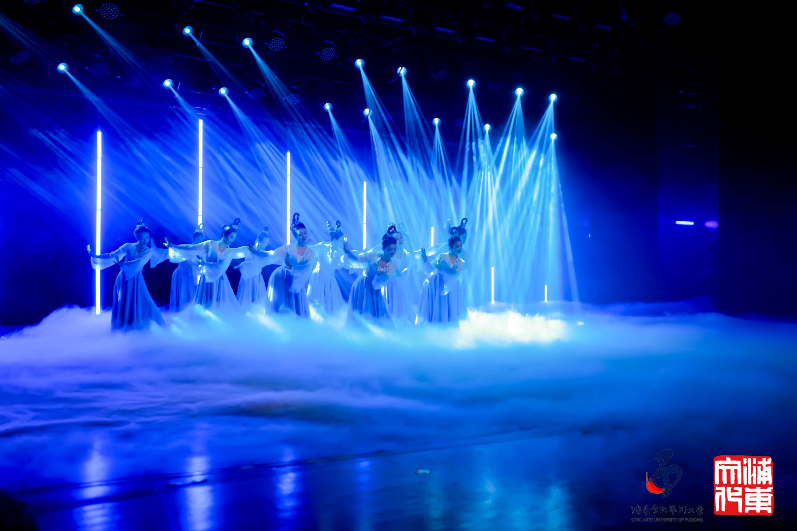 从古典琴箫合奏《阳关三叠》的千年余韵,到现代编创的活力四射,整场演出宛如一场穿越时空的艺术之旅。值得一提的是,演员们精美的舞台妆造,同样出自该校国风妆造班师生之手,体现了教学成果从学到用的完整闭环。而整场活动从台前到幕后的顺畅运转,离不开浦东新区文化艺术指导中心工作人员们全程的精心护航。