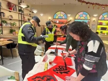 徐家汇社区文化活动中心工会驿站将传统年俗与暖心服务巧妙结合,在提供入会指导、公益理发、电动车检修等基础服务的同时,特别设置“写春联送福字”专区。墨香四溢间,一副副喜庆的春联、一个个吉祥的福字,为户外劳动者提前送上新春祝福。“跑车累了来喝杯热茶,还能领副春联带回家,年味儿一下子就浓了!”外卖员张师傅捧着春联,脸上洋溢着幸福的笑容。