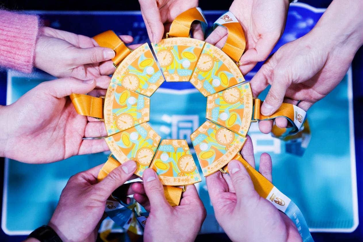 启动仪式上,主办单位的领导们共同将手中的扇形图案拼成一个大型比赛纪念徽章,正如此次趣味运动嘉年华的宗旨,让每一位参赛选手的力量凝聚成团,迸发出团队强劲的奋进之力。